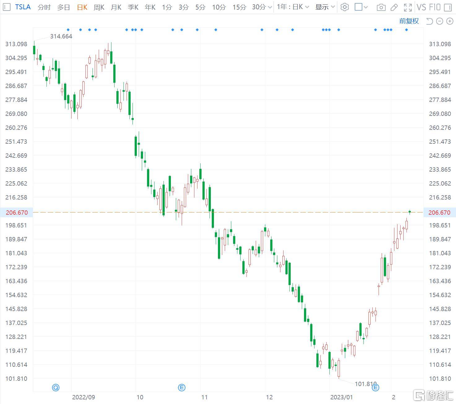 格隆汇2月9日丨特斯拉涨3.39%,报208.12美元,总市值为6572亿美元。该股一个月股价涨幅翻倍,且再度回到200美元上方。据乘联会日前发布的销量数据显示,特斯拉1月销量预估6.6万辆,同比环比双增长。 格隆汇APP公众号曾在今年1月6日发表过深度分析文章《世纪抄底特斯拉》,其中提到:“与其用线性思维简单地跟随趋势,倒不如逆向思考一下,是不是到了可以布局的时刻。